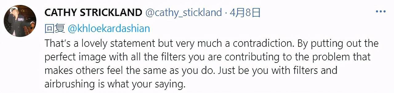 “这声明挺有爱,但非常矛盾。通过各种滤镜呈现出一个完美的形象,你这么做就是在制造问题,让别人像你一样感受到外貌上的不安全感。