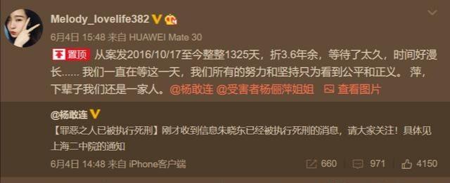 在法庭上,一边是朱晓东对一审宣判死刑的上诉申请,一边是杨俪萍的父母悲痛万分难以言表的心情,最终,在2020年6月4日,遵照最高人民法院下达的执行死刑命令,上海二中院依法对故意杀人犯朱晓东执行死刑。
