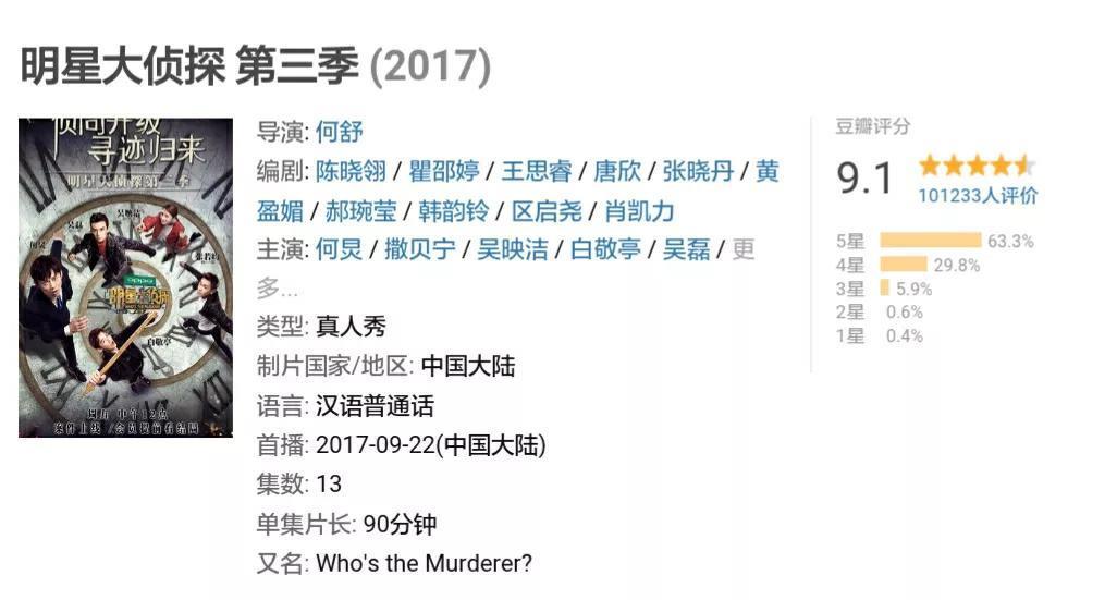 以上是《明星大侦探》第三季的所有介绍,你们喜欢哪一集呢?大家继续点赞关注支持哦(´-ω-`)