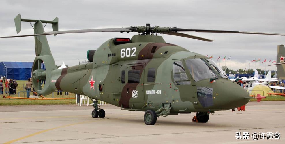 Ka-60是这种直升机的军用版本,在1998年首次推出,但此后进入了某种发展的停滞阶段。Ka-60早在1984年就开始研发了,第一架原型机最后在2007年飞行。