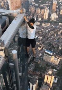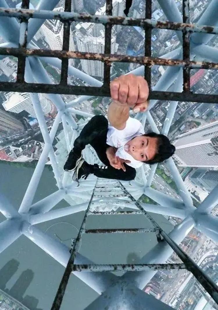 他站在了顶楼边缘,身上没有任何保护措施。他往楼底下望了望,然后退后几步做起了热身。与此同时,还有一部手机被绑在了吴永宁的身上。这部手机,应该已经随着他的坠落而不知所踪了。