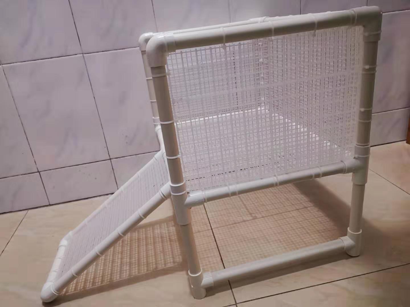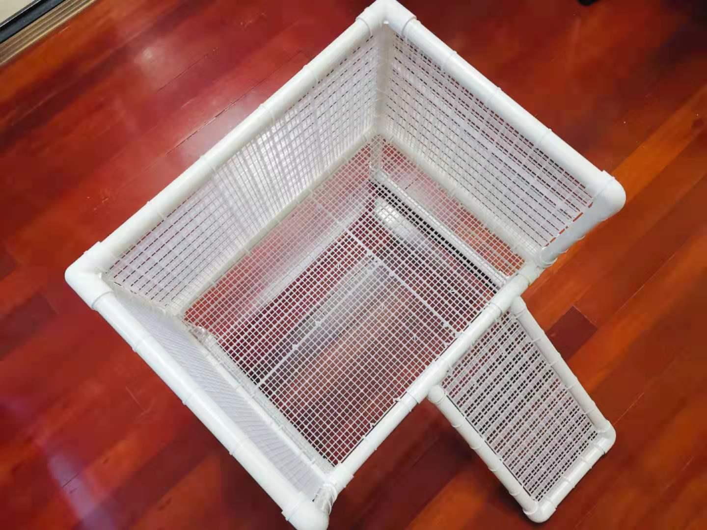 ⑥如使用网格板,建议设定晒台以及爬梯长宽时,综合考量,避免网格板不好裁剪。网格板都是有主干部分也有比较细的部分,一般来说我们的裁剪,是贴着主干部分,这样将其和PVC管固定的时候才能比较牢固;