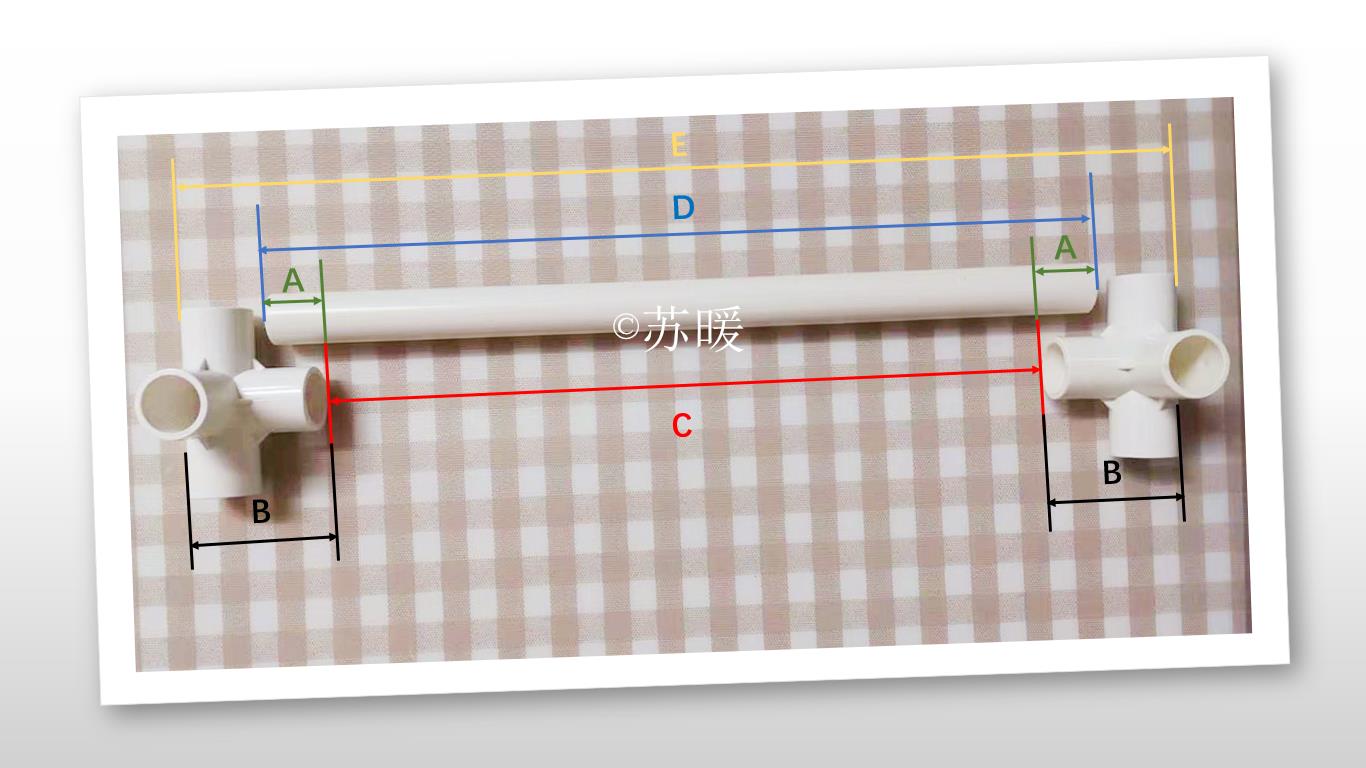 在制作晒台时,我们需要通过计算,算出我们所需要截取的PVC管长度,即D的数值。