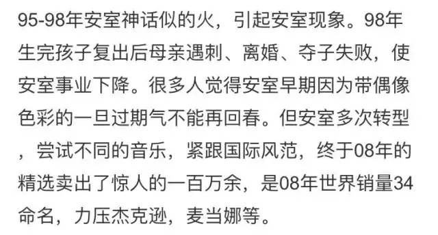 可爱情来了挡都挡不住,安室执意回归家庭,并宣布退出歌坛休整一年。当时逐利的小室哲哉相中滨崎步,照搬安室走红的经验去包装她,也获得了巨大的成功。
