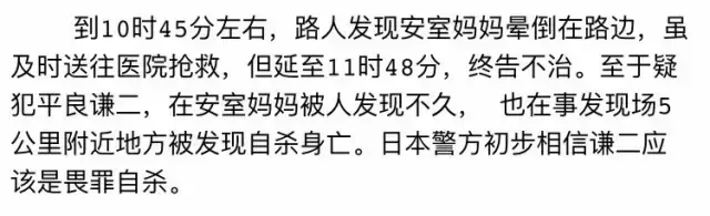 据日媒报道,惠美子的死与丈夫的弟弟有关,但当警方要抓捕嫌疑人时,却发现其弟平良谦二已在案发地不远处服下杀虫剂,畏罪自杀。