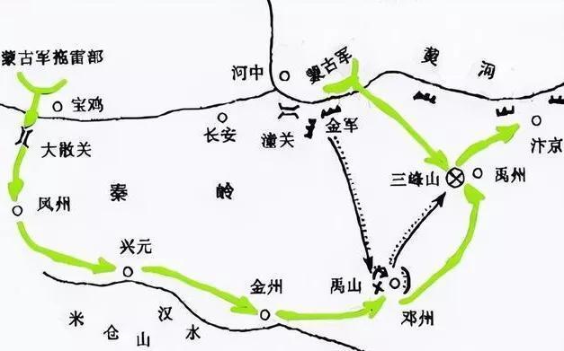 而后蒙军一路北上,陈兵河南禹州三峰山,兵锋直指金国都城汴京(开封)。