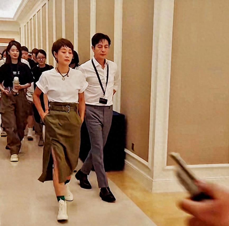 当天她身穿白T恤搭配宽松长裙,气场全开,丝毫看不出她已经47岁了,张颂文则是紧随其后,两人行色匆忙,像是在赶场的样子。