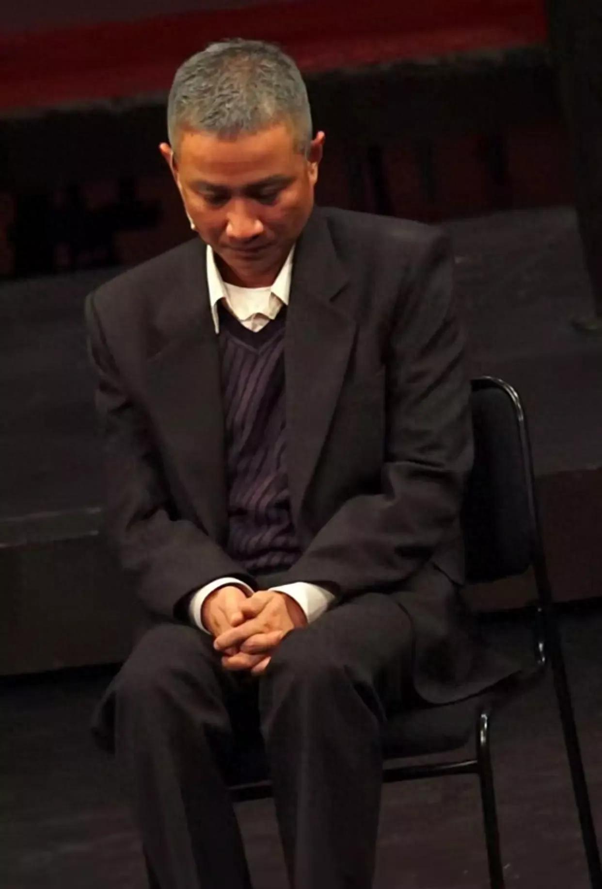 只见他或用一只手捂着胳膊,或双手交叉放在腿间,神态略显低落,主持人说话时,他也默不作声,不知道是不是刚刚出演话剧,还没从角色中跳脱出来。