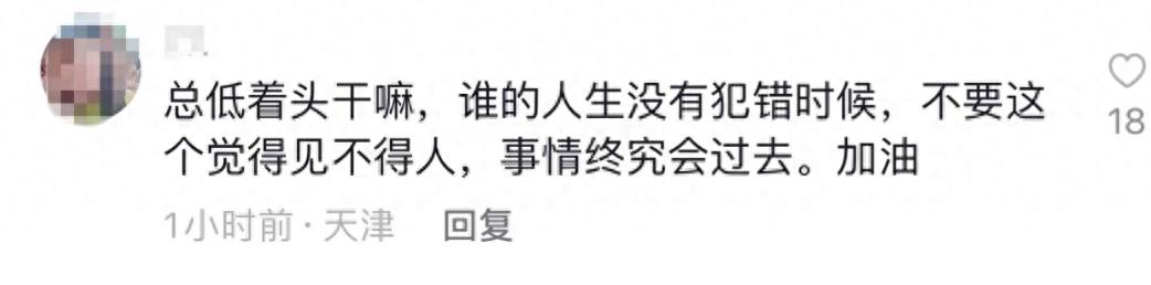 还有人看他一直把头低下,直言道人非圣贤孰能无过,希望他不要因此而颓废:
