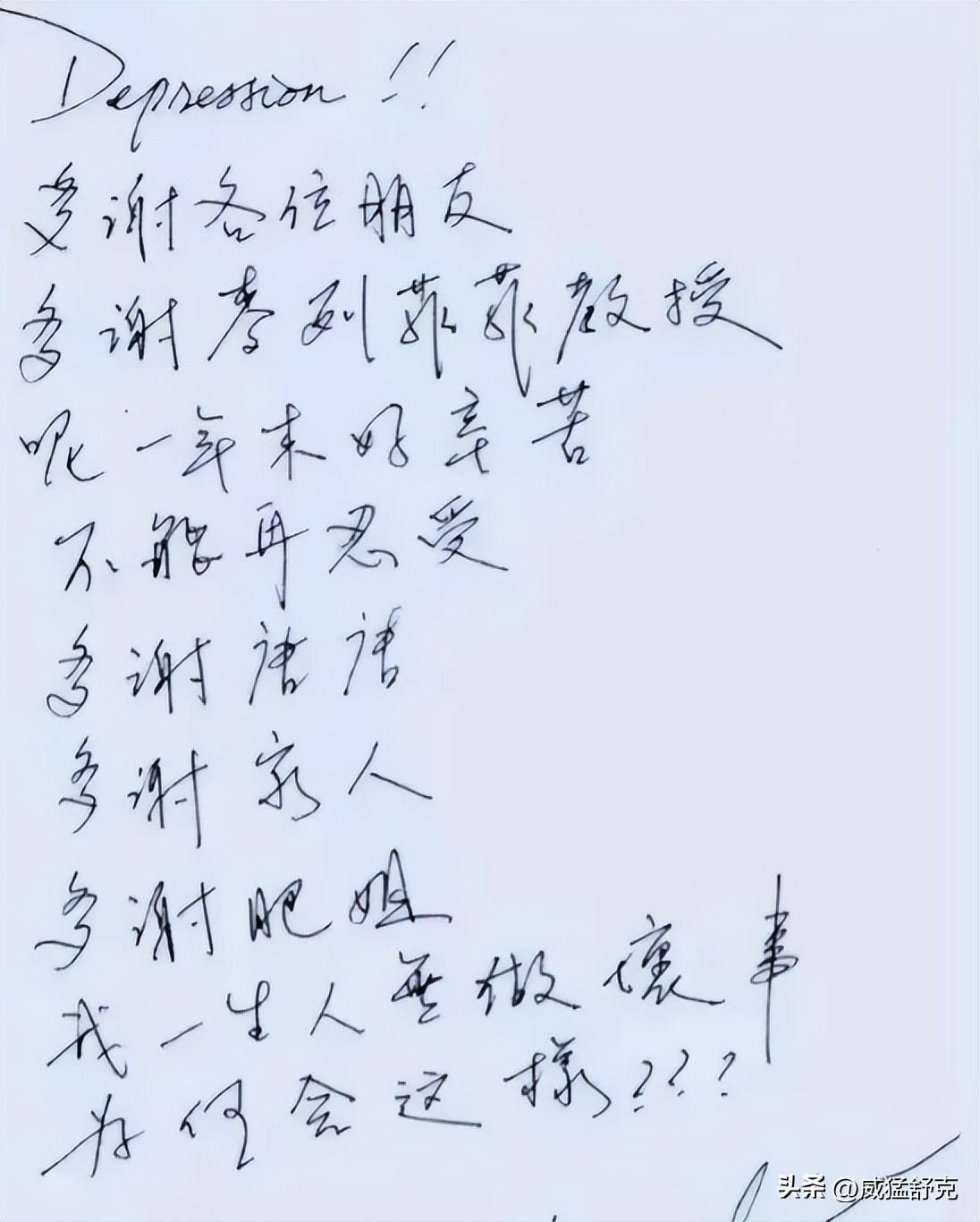 也有人说,他演得太投入了,演得太惨了,所以才会这么郁闷。也有人说,他和自己的同性情人不能为这个世界所容,于是就留了一封书信,然后就走了。