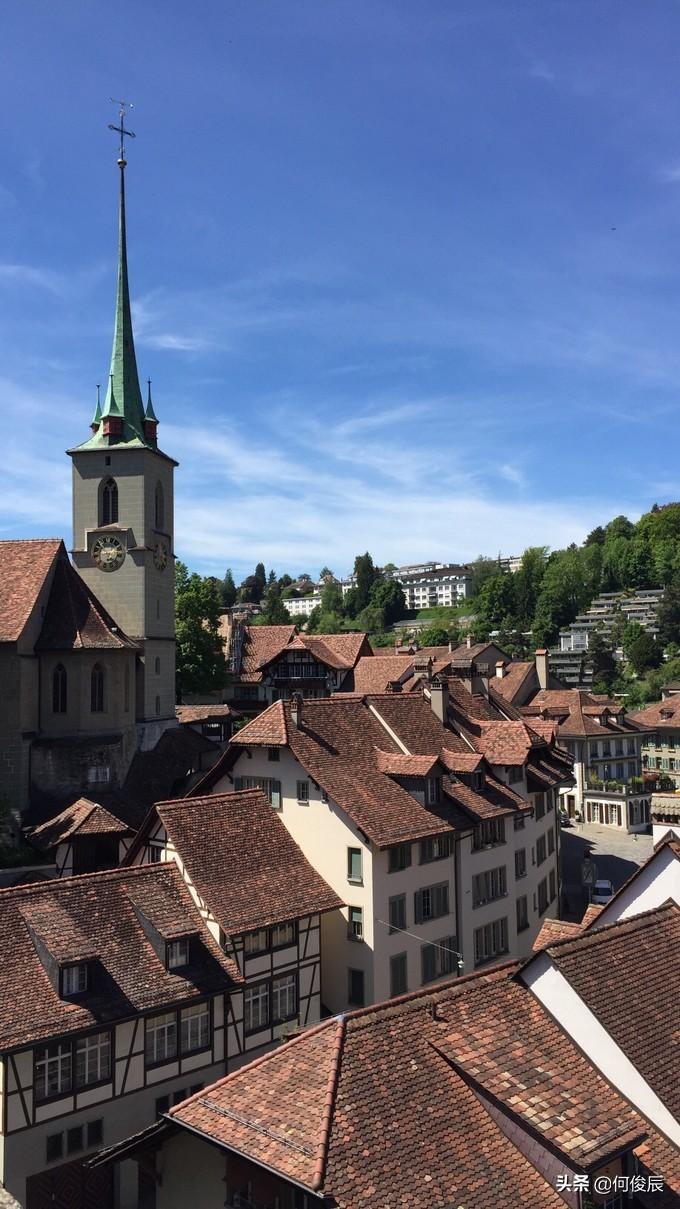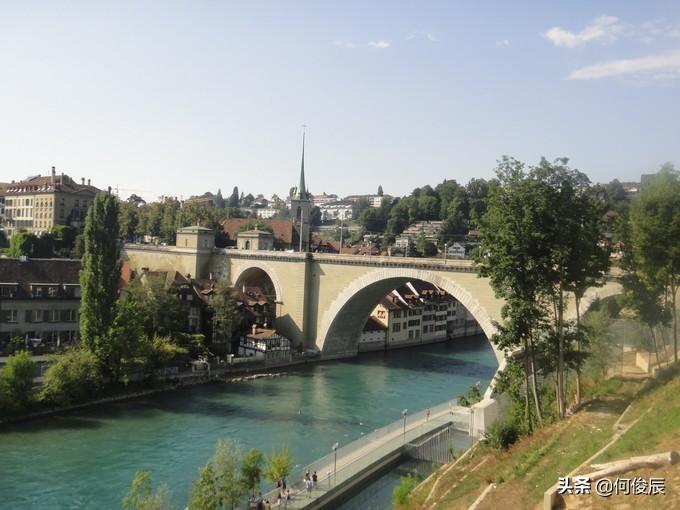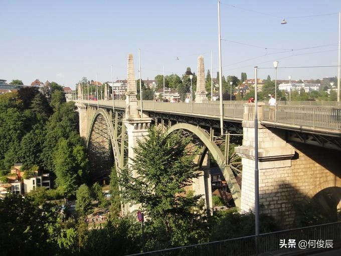 远处的是 洛林 大桥和旁边的阿勒河铁路桥。来到 伯尔尼 才发现,阿勒河上的拱桥群完全不会输给 巴黎 的塞纳河哦。 巴黎 的塞纳河拱桥群座座精巧,历史悠久。而 伯尔尼 的阿勒河拱桥群由于地势的原因,座座宏伟壮观。不知道有没有类似塞纳河的游船服务,如果有的话还是很推荐乘坐的,不过我游览的时候好像没有看到船……