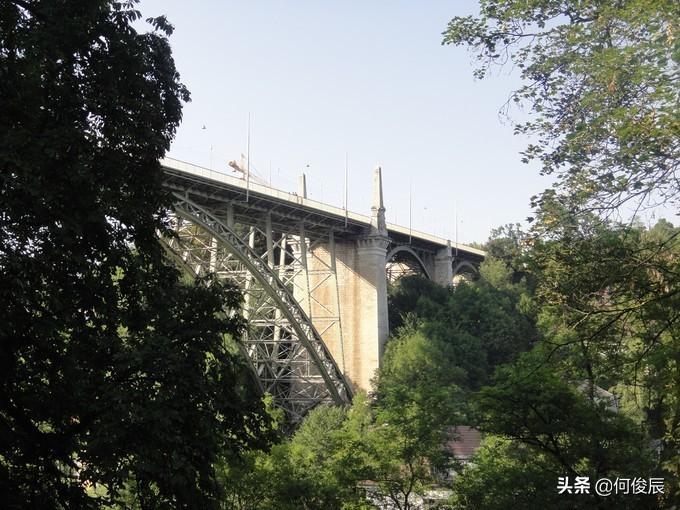由于地势原因,从下方看阔恩豪斯大桥的115米主拱非常壮观