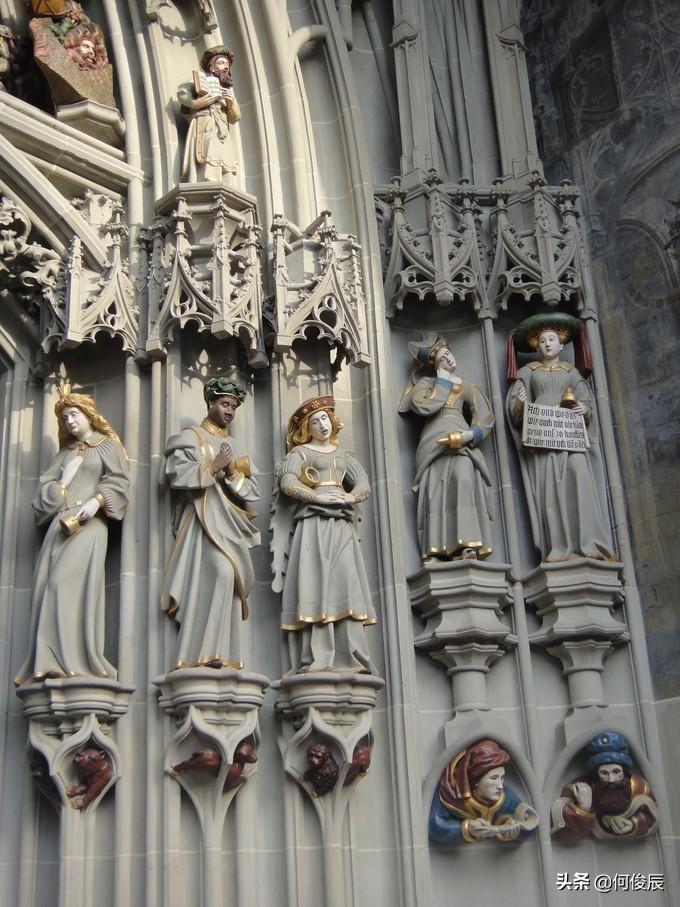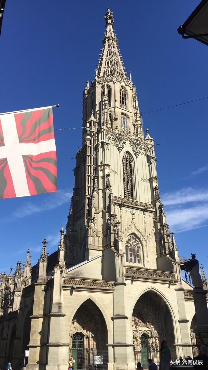 虽然 意大利 有很多漂亮的教堂,但是眼前 伯尔尼 大教堂,有名阶梯大教堂还是让我眼前为之一亮。伯尔尼 大教堂是 瑞士 最高、最重要的中世纪晚期教堂。作为1983年被世界教科文组织列为文化遗产的伯尔尼 古建筑之一的 伯尔尼 大教堂,在 伯尔尼 城市建筑中有着至关重要的意义。 伯尔尼 大教堂始建于1421年,数代建筑师都将心血倾注在这座晚期哥特式建筑物上,直1893年,大教堂才竣工。19世纪末期修建的尖塔,成了 瑞士 最高的教堂,塔的高度100米。虽然又遇到了尖塔维修,但是这座高耸入云的尖塔还是让我叹为观止。