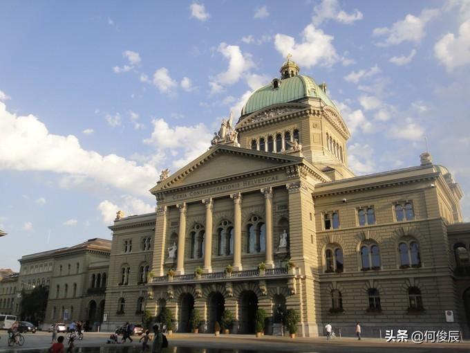 瑞士 过去在很长时间内没有固定的首都,1848年11月28日, 伯尔尼 被定为 瑞士 联邦首都,成为联邦政府所在地和全国政治和外交中心。联邦政府和联邦议会设在这座铜绿色的联邦国会大楼中,这是一组用花岗石建造的宫殿式的大型建筑群,建于1852年-1857年的带有文艺复兴时代风格的建筑,那绿色圆顶,高高突出在市区一片红瓦房顶之上,十分醒目。大厦左右两翼是联邦各部的办公楼 ,中间圆顶下面是联邦议会两院的会议厅。大厦于1894-1902年进行扩建,1993年再次进行修缮,并添置了电子表决装置。