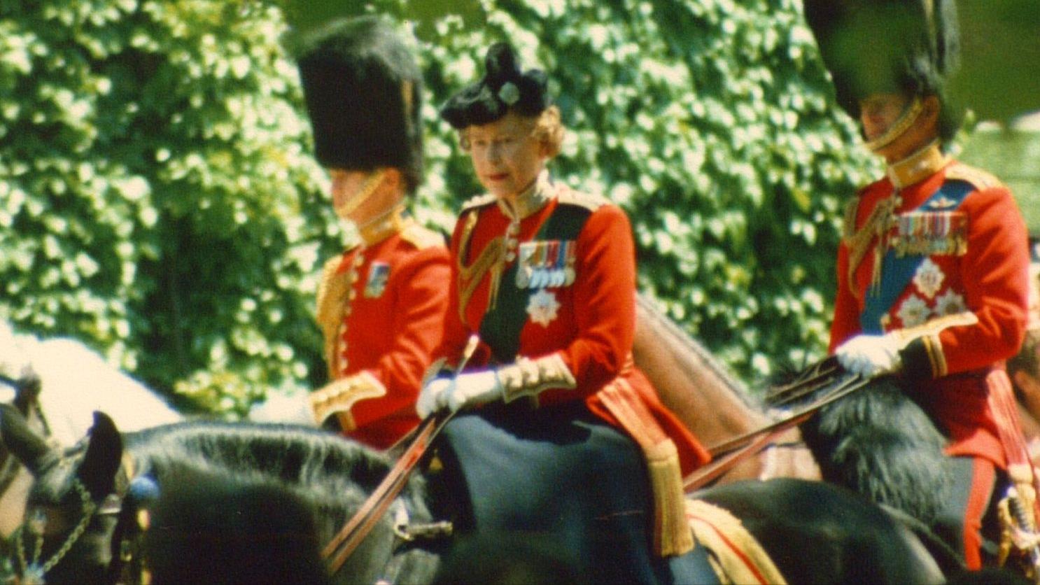 伊利沙伯在军旗前敬礼分列式,摄于1986年