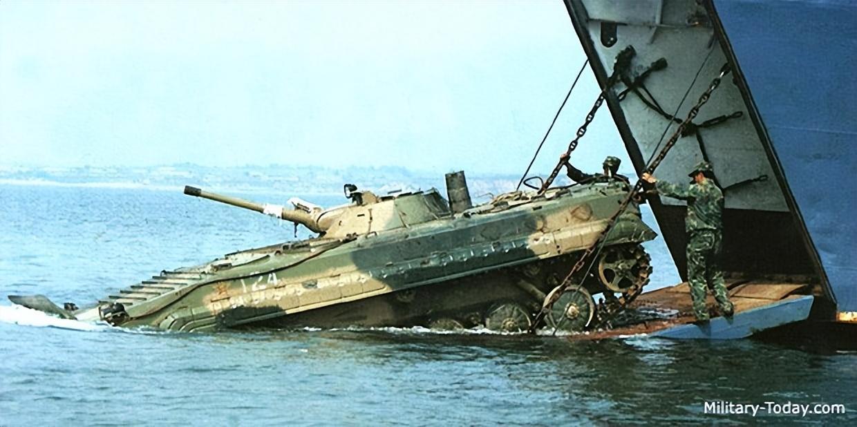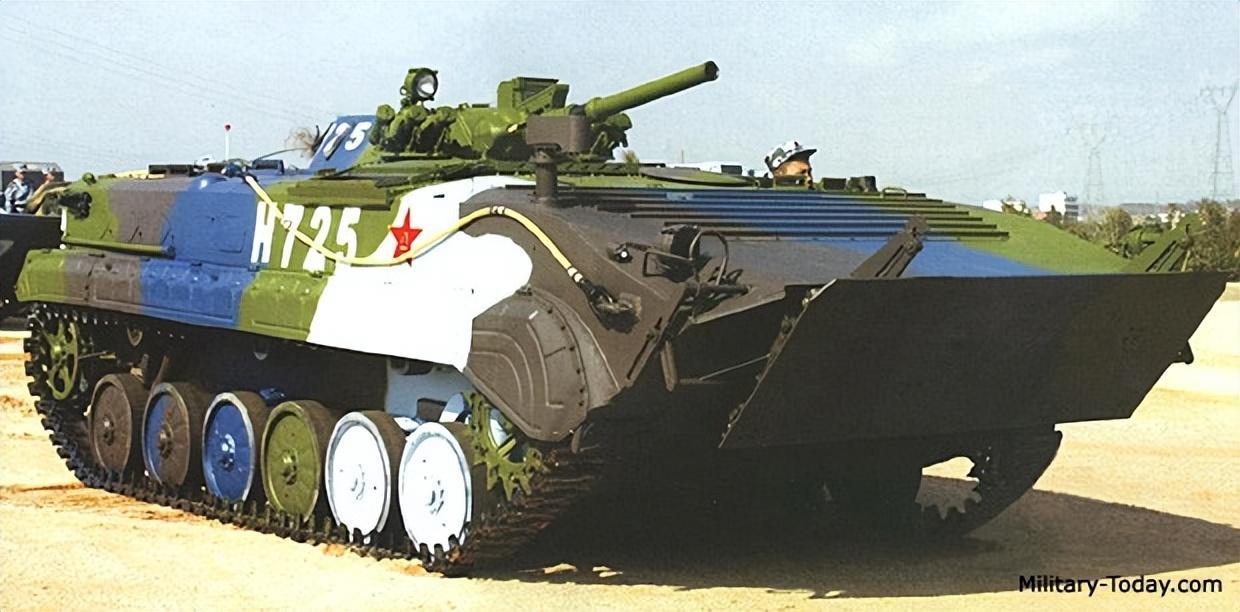86B型,两栖IFV,在PLA海军陆战队服役。它有改进,包括一个前浪栅栏和外部船用发动机,从而提高水上性能。
