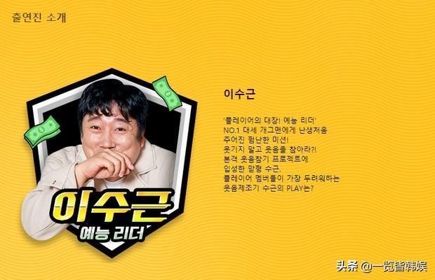 光看到节目的预告片段观众久笑的不行了,节目的主旨是要一众出演的嘉宾在各种情景下忍住不能笑,一旦笑了就会罚钱,一次1万韩元(约65人民币)。李秀根爽朗的笑声已经成为了他的标志了,让他忍住笑简直比让刘在石不说话还难,不得不佩服节目组的创意和脑洞,这次根仔怕是要连出演费都赔了,还有可能要“卖身”给节目组。