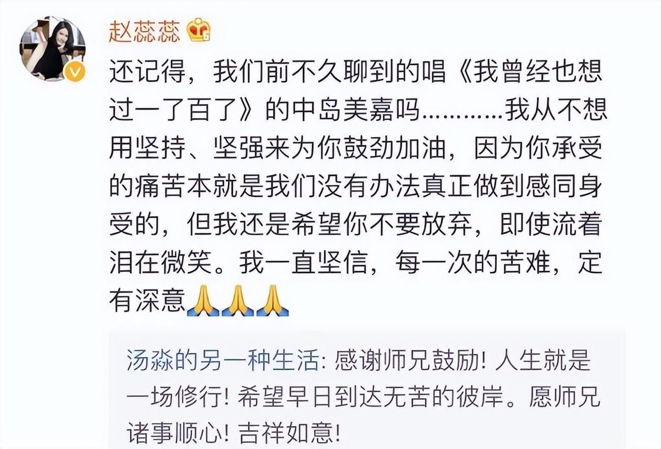 汤淼曾经也经常在社交媒体上感慨人生,表示目前的生活还是有些痛苦的,只能乐观去面对,曾经的中国女排主力赵蕊蕊也鼓励过他,希望能够调整好心态,乐观面对。