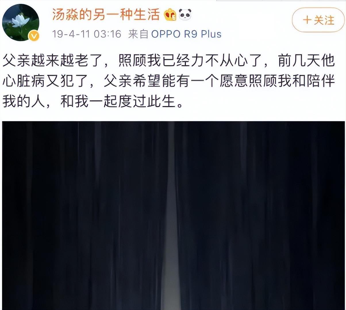 值得一提的是,汤淼曾经在社交媒体上面进行线上征婚,他表示父亲越来越老了,照顾自己有些吃力了了,而且父亲还有心脏病,父亲希望能有一个愿意照顾和陪伴自己的人,和自己一起度过此生。也就是说汤淼希望能够找到另一半共度余生,目前看来,这个人依然没有出现。