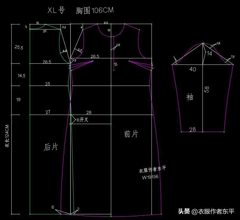 XL码裁剪图,成衣胸围106CM适合净体胸围95左右