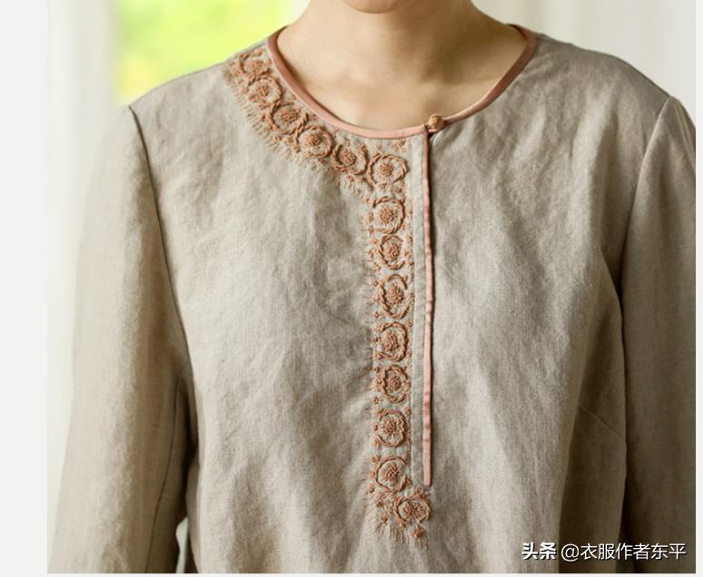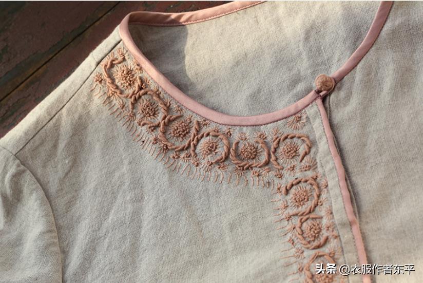 领口绣花不会的可以省略,或是买现成的贴上也可以