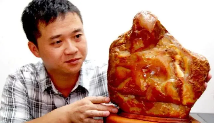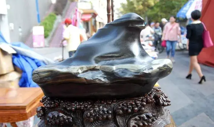 在湖北宜昌奇石市场里,有一块60公斤酷似航空母舰的奇石摆在外边标价12.8万元出售,摄影师不懂奇石价格,不知道这块奇石是否值这个价钱。