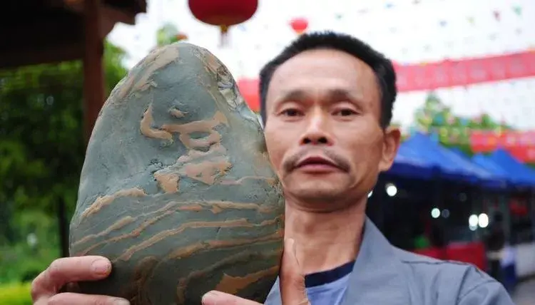 一位农民大哥手拿着他的奇石,在贵州奇石展上开价600万元出售,并声称购买这块奇石的买主不要讲价,还价不卖。在现场观看的市民称,这一小块石头值那么多钱吗?