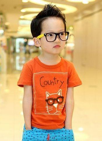 style9:帅气而有型的一款小男生发型设计,预留的略长的发顶发丝呈现着向上翻翘的自然效果,凸显小巧玲珑的脸型同时显得清爽又利落,框架眼镜的佩戴更添时尚气息!