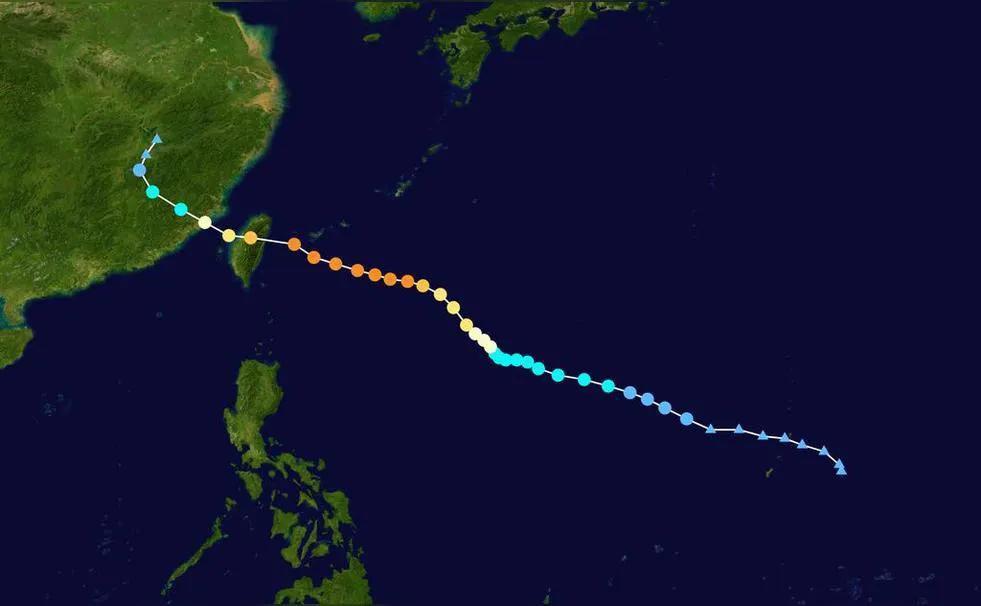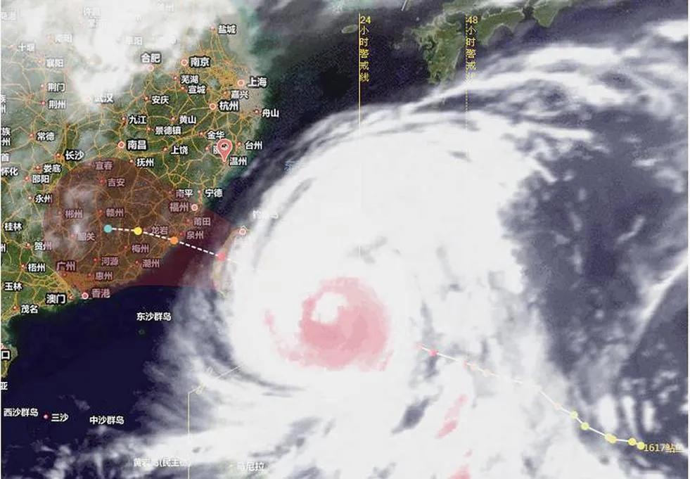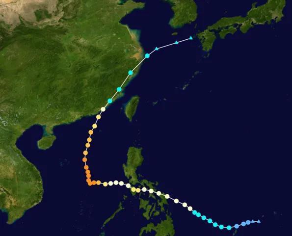 9月15日以强台风级在中国福建省厦门市登陆,登陆时中心最大风力48m/s(年鉴上调至52m/s,超强台风),重创厦门市。