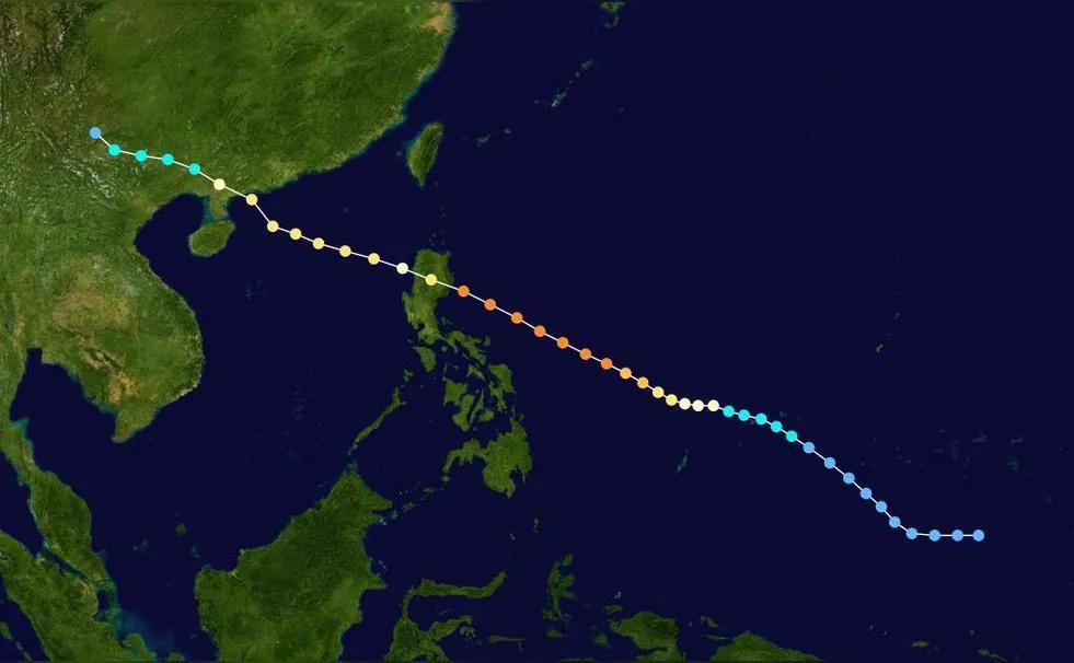 10月19日23时40分前后,在菲律宾吕宋岛东北部沿海登陆。