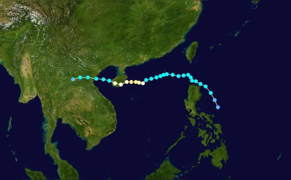 7月24日早上在阳江附近登陆,并在当日下午减弱为一个强热带风暴。