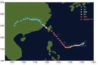 9月12日02时加强为台风,08时加强为强台风,11时继续加强为超强台风级。
