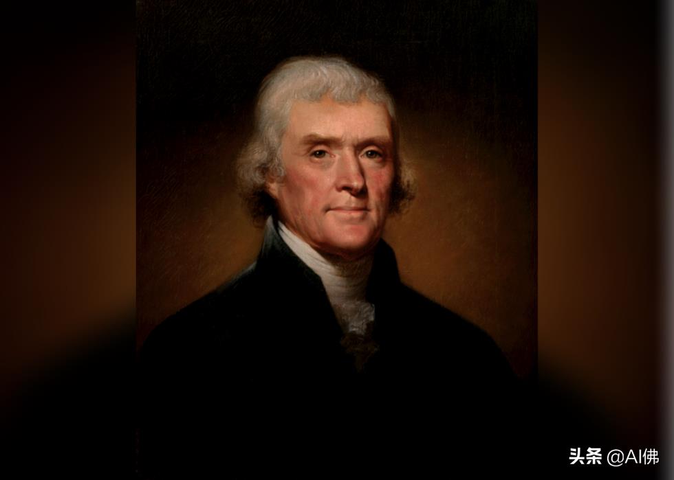 伦勃朗·皮尔 (Rembrandt Peale) 在杰斐逊于 1800 年领导国家前一年在 23 ⅛ x 19 ¼ 英寸的油画布上绘制了托马斯杰斐逊总统的肖像。 1805 年第一任期。白宫历史协会报告说,自从杰斐逊总统完成压倒性的连任后,他坐下来感觉更放松,“为这张正式肖像摆姿势,以一种有点不合常规的方式,他的头发没有梳好,用大,毛皮内衬斗篷。”