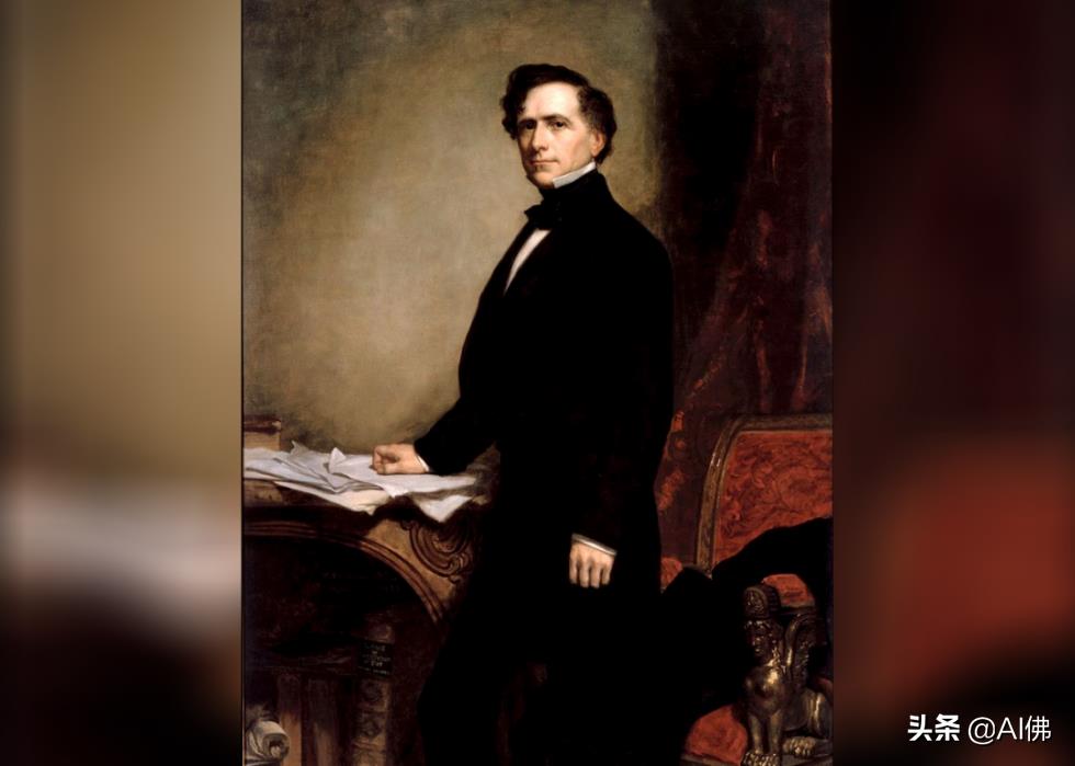 富兰克林总统将成为美国第 14 任领导人,也是肖像画家乔治·彼得·亚历山大·希利 (George Peter Alexander Healy) 所画的众多领导人之一。这幅大小为 62 3/16 x 47 ⅛ 的布面油画是在 1858 年皮尔斯总统任职一年后绘制的,在许多美国领导人的画作中很常见。尽管总统在美墨战争中担任准将,但希利并没有穿着军装来创作皮尔斯总统;相反,他穿着正式的黑色西装。