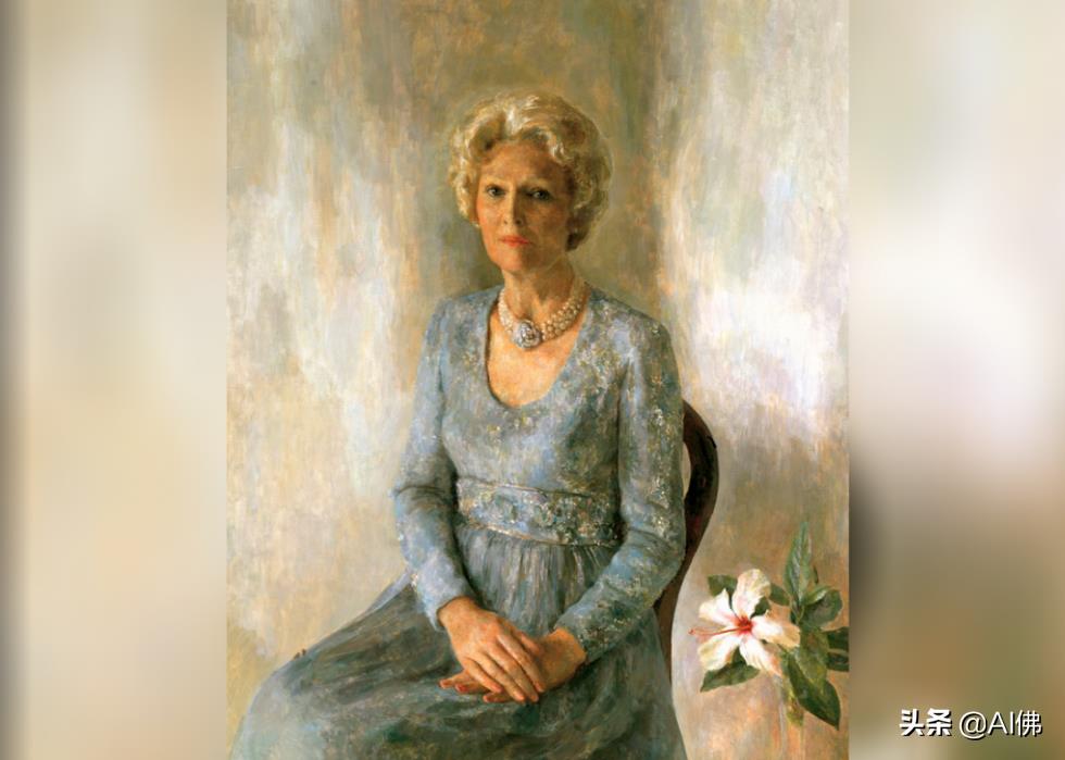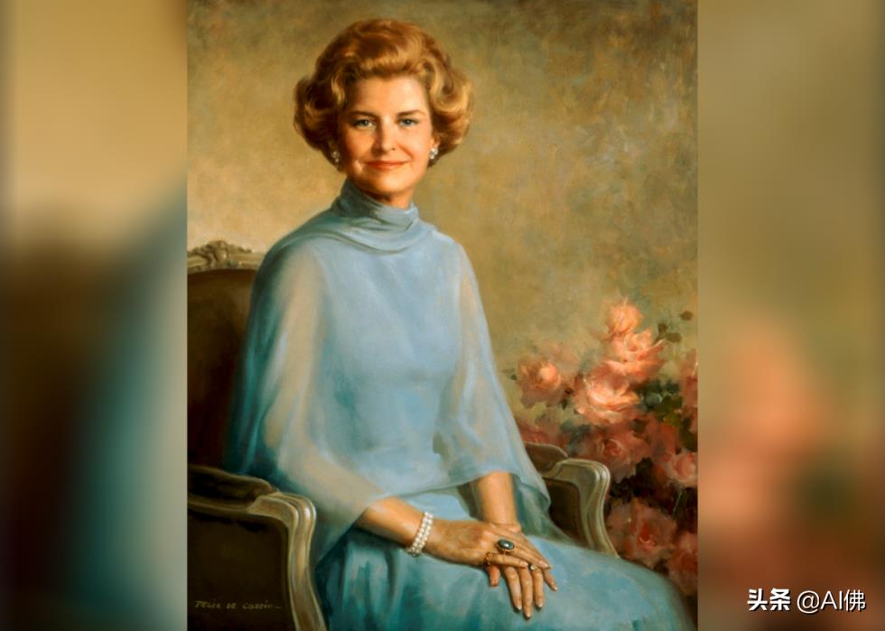 古巴艺术家菲利克斯·德·科西奥 (Felix de Cossio)于 1977 年抓获了第一夫人贝蒂·福特。菲德尔·卡斯特罗 (Fidel Castro) 上台后逃离古巴的德·科西奥 (De Cossio)描绘了第一夫人坐在路易十五时代的椅子上,坐在一束鲜花前。第一夫人的肖像画比她丈夫的更顺利,后者拒绝了美国艺术家约翰·乌布赖特 (John Ulbright)的第一幅肖像画。
