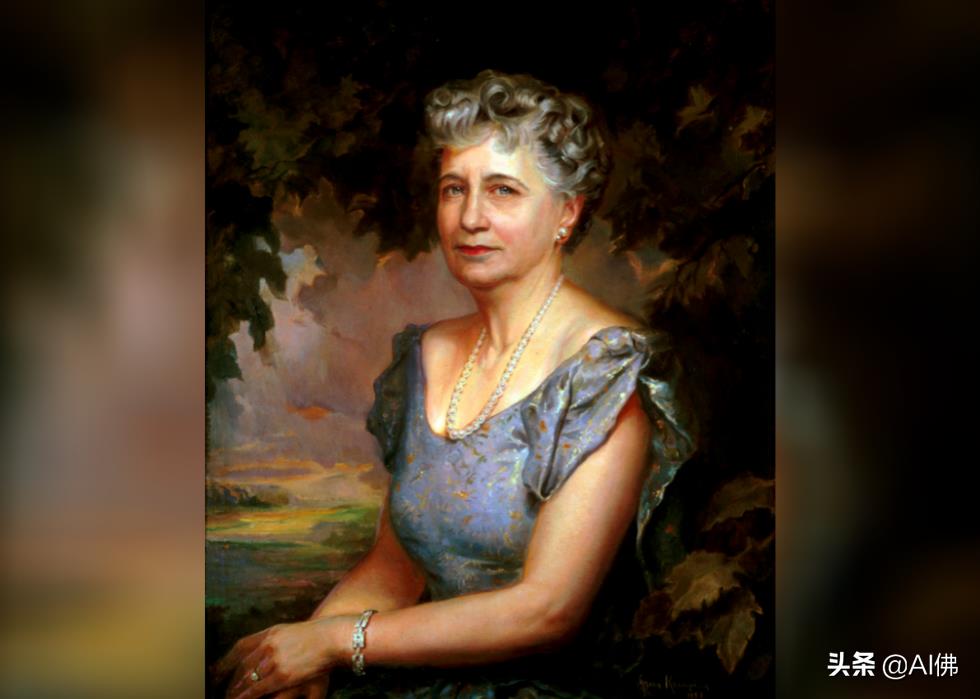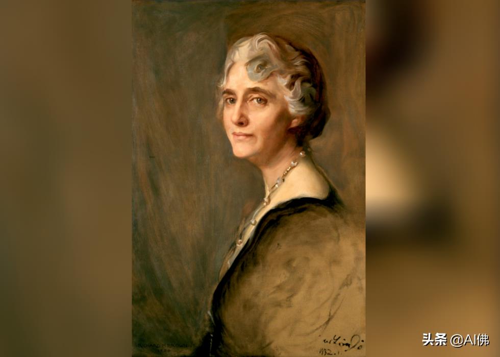 1950 年,艺术家理查德·马斯登·布朗 (Richard Marsden Brown)根据菲利普·德·拉斯洛( Philip de László) 的肖像创作了第一夫人卢·胡佛 (Lou Hoover) 的肖像。胡佛夫人曾两度担任美国女童子军主席,并且在遇到她未来的丈夫时是斯坦福大学地质系唯一的女性。