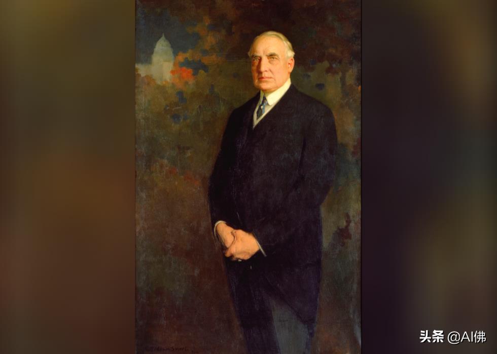 著名的英国画家埃德蒙·霍奇森·斯马特 (Edmund Hodgson Smart) 为沃伦·G·哈丁 (Warren G. Harding) 总统的官方肖像画上了油画。斯马特以肖像画家而闻名,此前他曾为英国国王爱德华七世、法国元帅福煦和约翰潘兴将军等著名的世界领导人画过画。斯马特的 58 ⅜ x 37 ⅞ 英寸描绘是在 1922 年 6 月,也就是哈丁在旧金山死于心脏病的前一年。