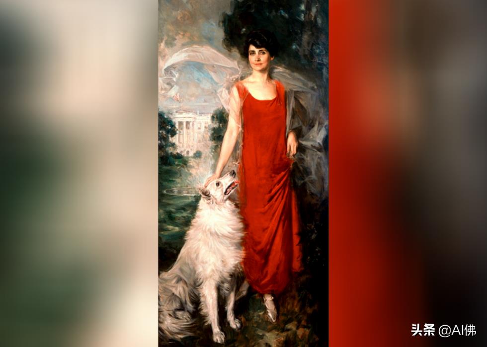 霍华德·钱德勒·克里斯蒂 (Howard Chandler Christy)描绘的第一夫人格蕾丝·柯立芝 (Grace Coolidge)站在她的白色牧羊犬罗伯·罗伊 (Rob Roy) 旁边的水彩画,至今仍挂在白宫的中国室里。克里斯蒂在其职业生涯后期开始捕捉著名政要,最出名的是插画家,创作了爱国的第一次世界大战海报和“克里斯蒂女孩”,后者成为理想的“新女性”的象征。他最著名的作品是 20 x 30 英尺的“签署宪法”,位于美国国会大厦的东侧大楼梯间。
