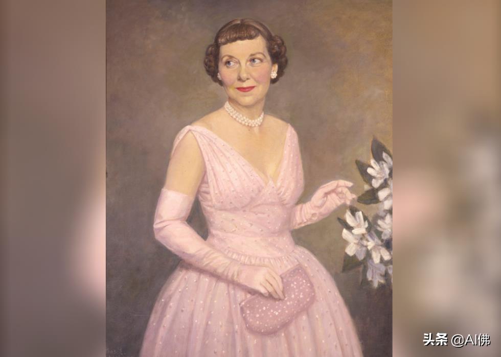艺术家 Thomas Edgar Stephens于 1959 年拍摄了Mamie Eisenhower 的官方肖像,展示了第一夫人的正式着装,配以相配的粉红色手拿包和珍珠。斯蒂芬斯是一位成熟的肖像画家,之前曾创作过乔治·C·马歇尔和德怀特·艾森豪威尔总统的肖像。1948 年,斯蒂芬斯为玛米·艾森豪威尔画了他的第一幅肖像,当时她的丈夫是哥伦比亚大学校长。