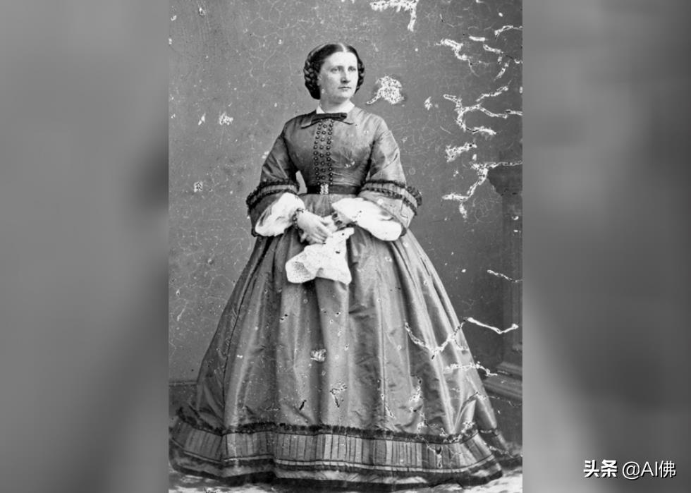 侄女和终身单身总统詹姆斯·布坎南的病房,第一夫人哈里特·莱恩在他的叔叔执政期间成为她叔叔的官方白宫女主人。虽然第一夫人哈丽特身着全长系扣连衣裙的黑白照片的摄影师不详,但它已被纳入收藏馆。这位白宫女主人因捐赠了大量的艺术收藏而被史密森学会称为“国家美术收藏的第一夫人”,她还在约翰霍普金斯医院建立了一个青少年病残之家。