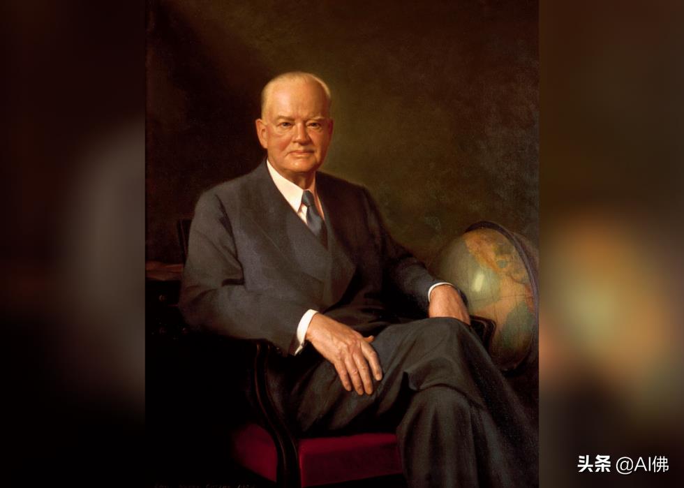 波士顿人埃尔默·韦斯利·格林 (Elmer Wesley Greene) 在赫伯特·胡佛 (Herbert Hoover)卸任 23 年后于 1956年画了他的画。这幅 50 ⅛ x 40 ⅛ 英寸的油画描绘了胡佛坐在椅子上,双腿交叉,旁边是一个地球仪。格林还创作了教皇庇护十二世、红衣主教斯佩尔曼和前佛罗里达州州长勒罗伊柯林斯等显要人物的肖像。