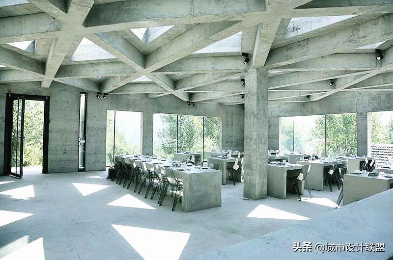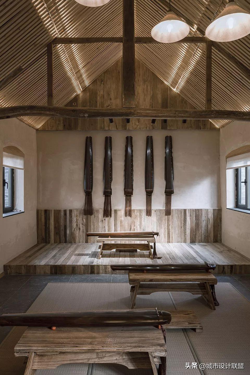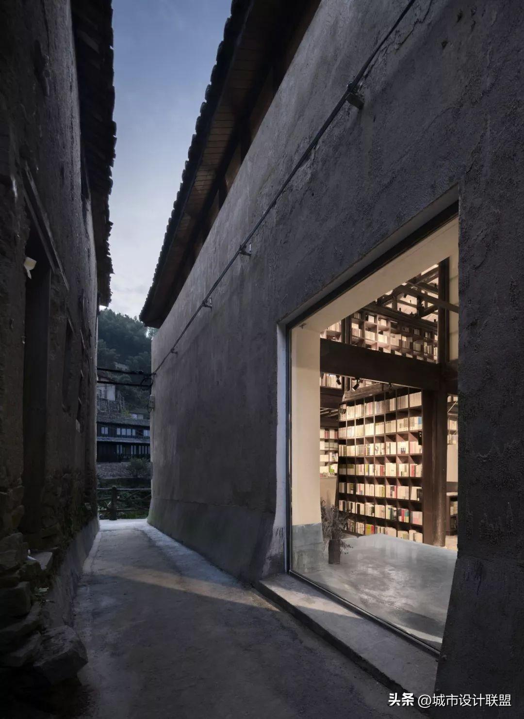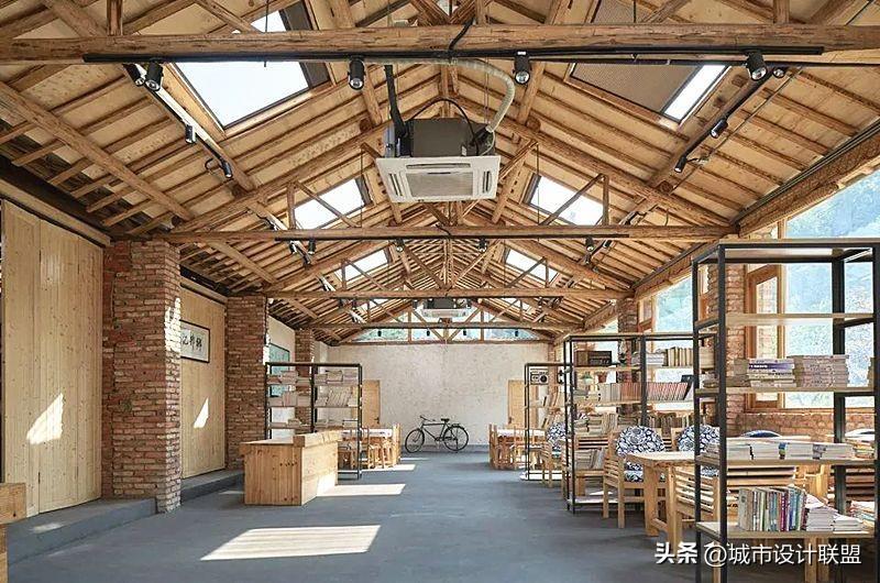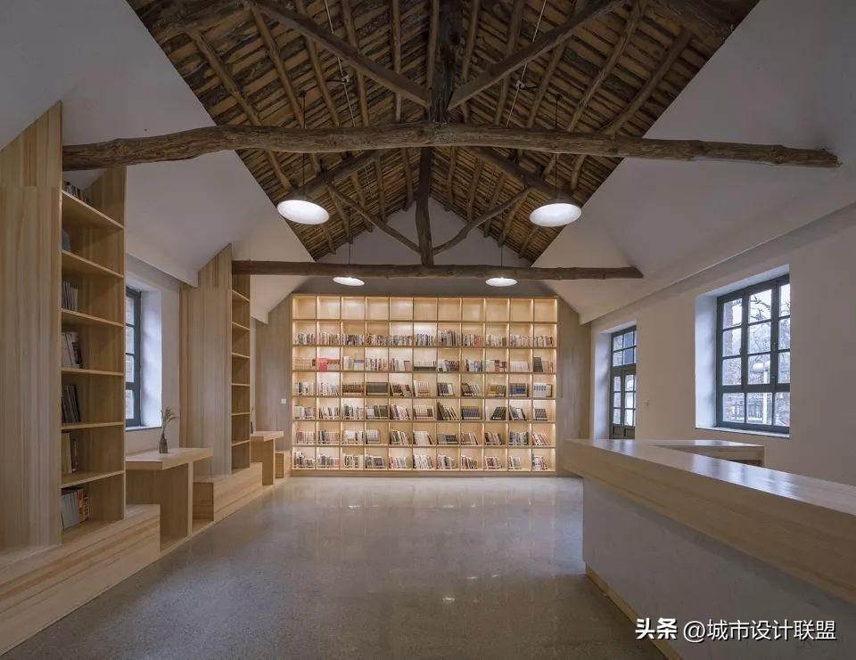 设计师在大空间中尽量多的设置天窗,使风景最大化的映入室内,也尽可能减少对周边民宅的干扰。施工中大量使用就地取材的乡土材料,门窗由村里的老工匠制作。