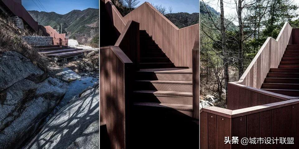 设计采取风景内化的策略,不仅是建立对于不利外部的防御性,反之也让被渗透的内部成为景观中一部分。同时民宿也为小镇提供了可共享的公共空间,造就了公共区与民宿之间特殊的流线关系和多样的游走体验。
