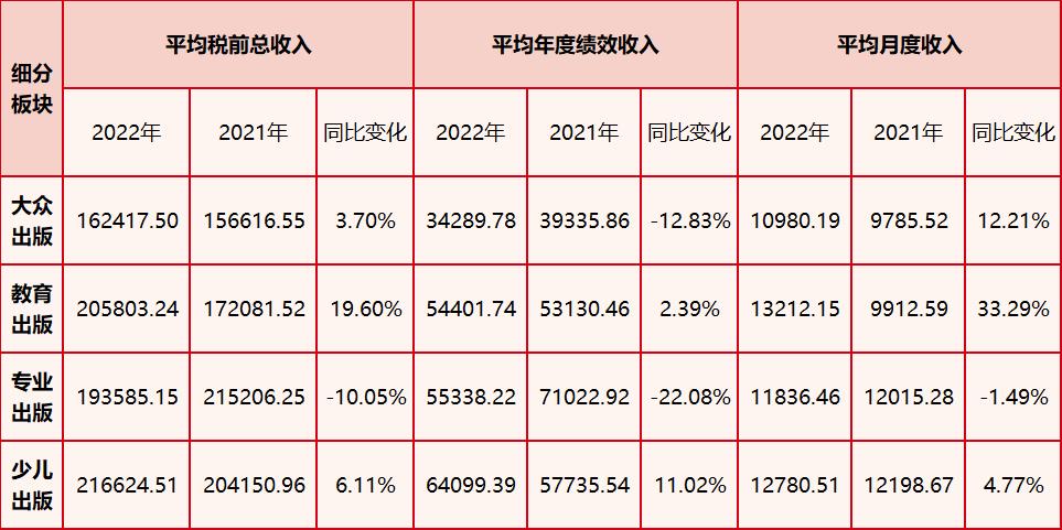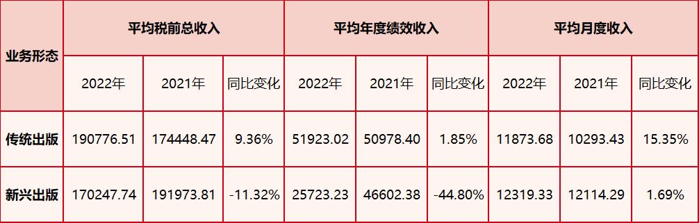 调查结果显示,2022年,传统出版从业人员的平均税前总收入是190776.51元,同比增长9.36%;新兴出版从业人员的平均税前总收入是170247.74元,同比下滑11.32%。
