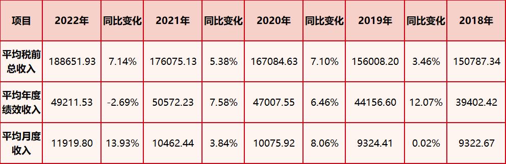 1.年平均工资突破18万元,平均年度绩效收入呈负增长