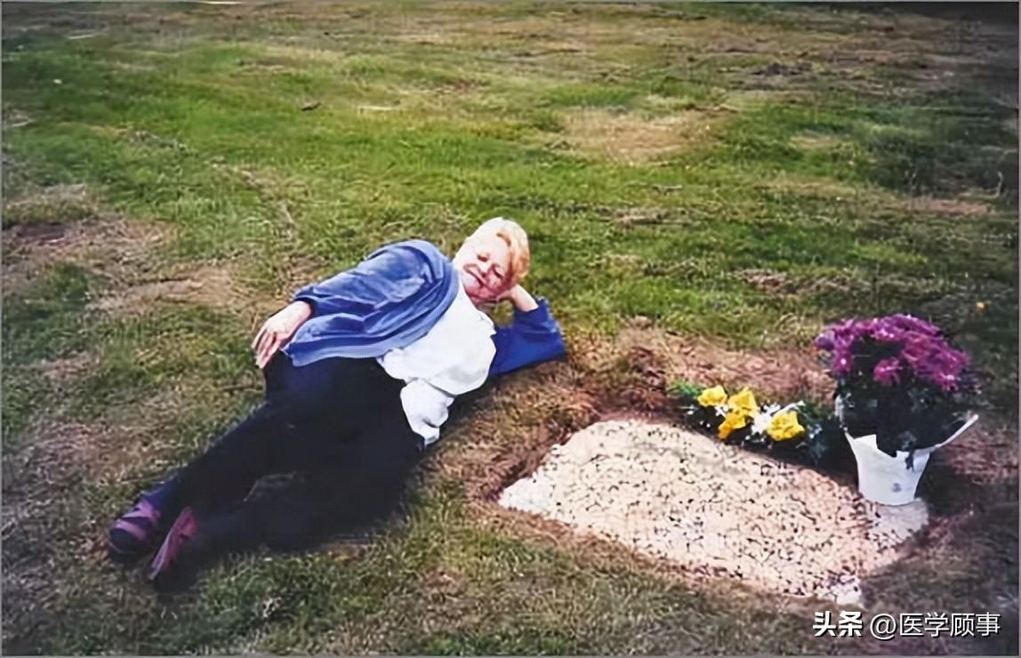 甚至还在当初自己为自己准备的空墓碑旁拍了照片