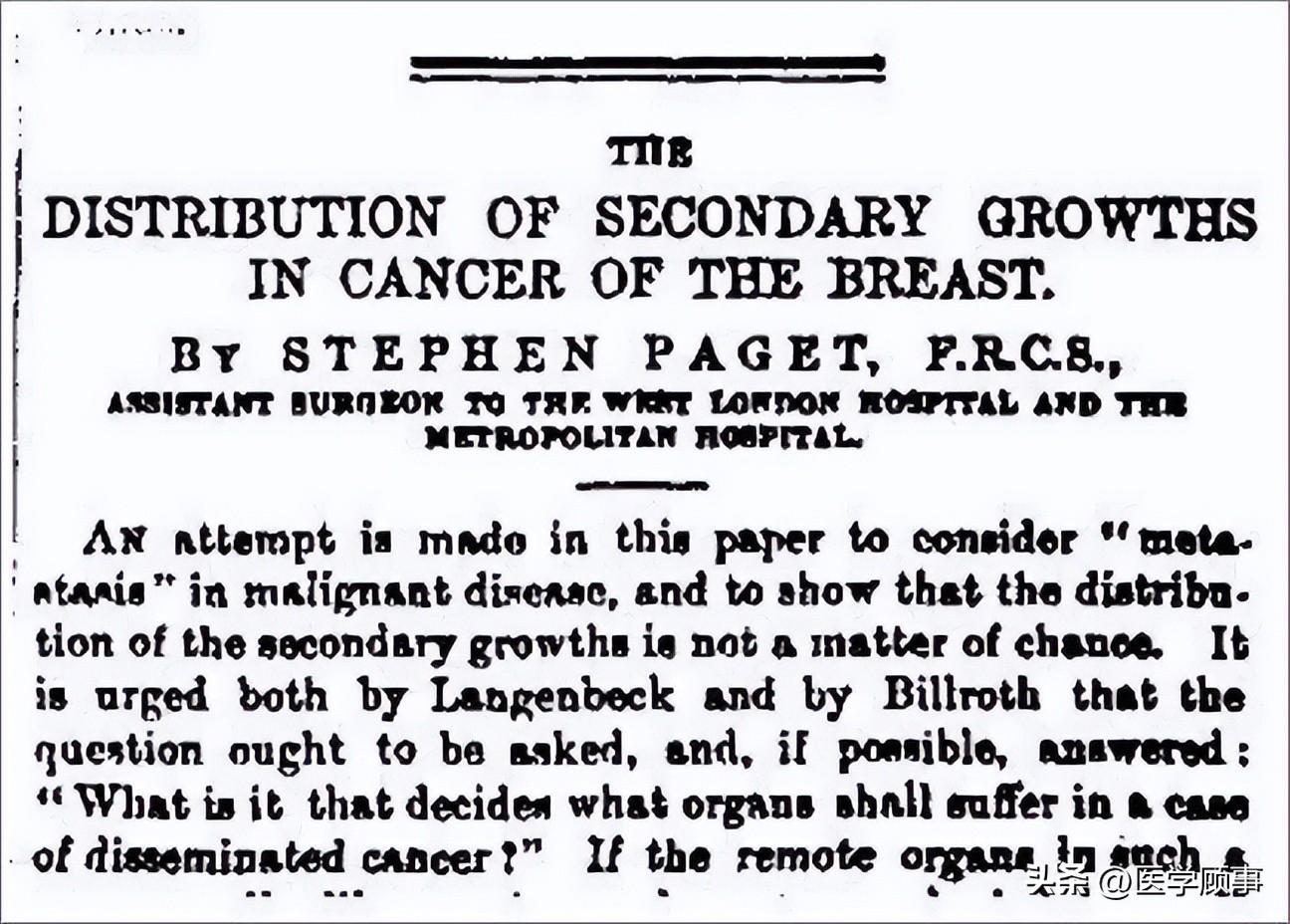 130年前,是的,130年前1889年,刚刚过完1888年的最后一天,一位外科医生完成了一篇他的论文,第一次把对癌症的研究提高到了分子水平上,对癌症的扩散做了研究,提出血液是癌细胞资深传播的土壤,即种子和土壤假说,Seed and soil hypothesis