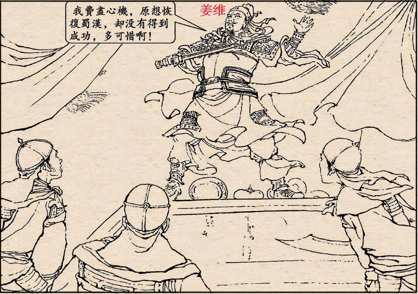 钟会、姜维,在叛乱泄密后,钟会“掣剑立杀数人”,但随即被乱箭射死,而姜维拔剑上殿,“往来冲突,杀死数十人”,最终无力回天,挥剑自刎而死。