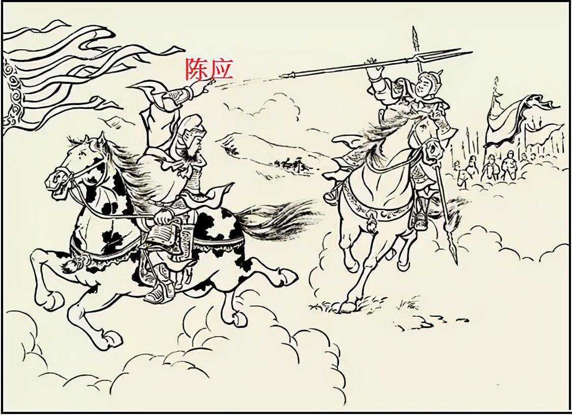 陈应与鲍隆号称“桂阳双壁”,自称可以飞叉射虎!赵云计取桂阳时,陈应高调主战,不顾桂阳太守赵范的劝告,冲出城去与赵云单挑。数合之后,陈应诈败,赵云追赶,陈应突然反身怒投飞叉,赵云眼疾手快,竟然将其接住,随即将陈应生擒。