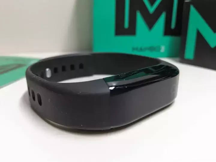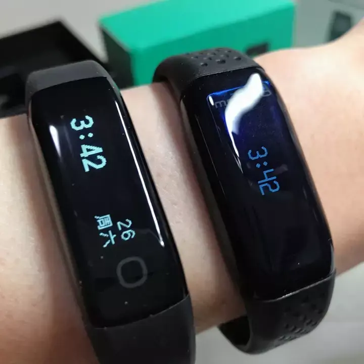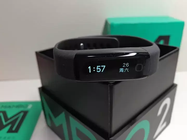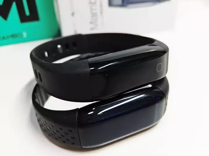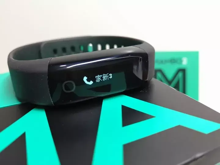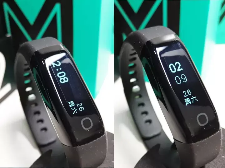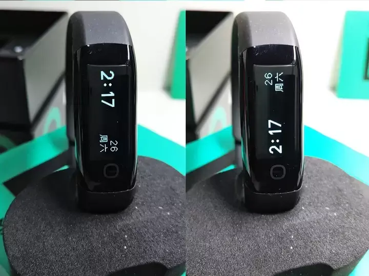 同样是通体黑色的手环,二代显得更加通透,除去包装盒的装衬效果,升级的屏幕材质也是重要原因,这一点我们放到后面去谈。